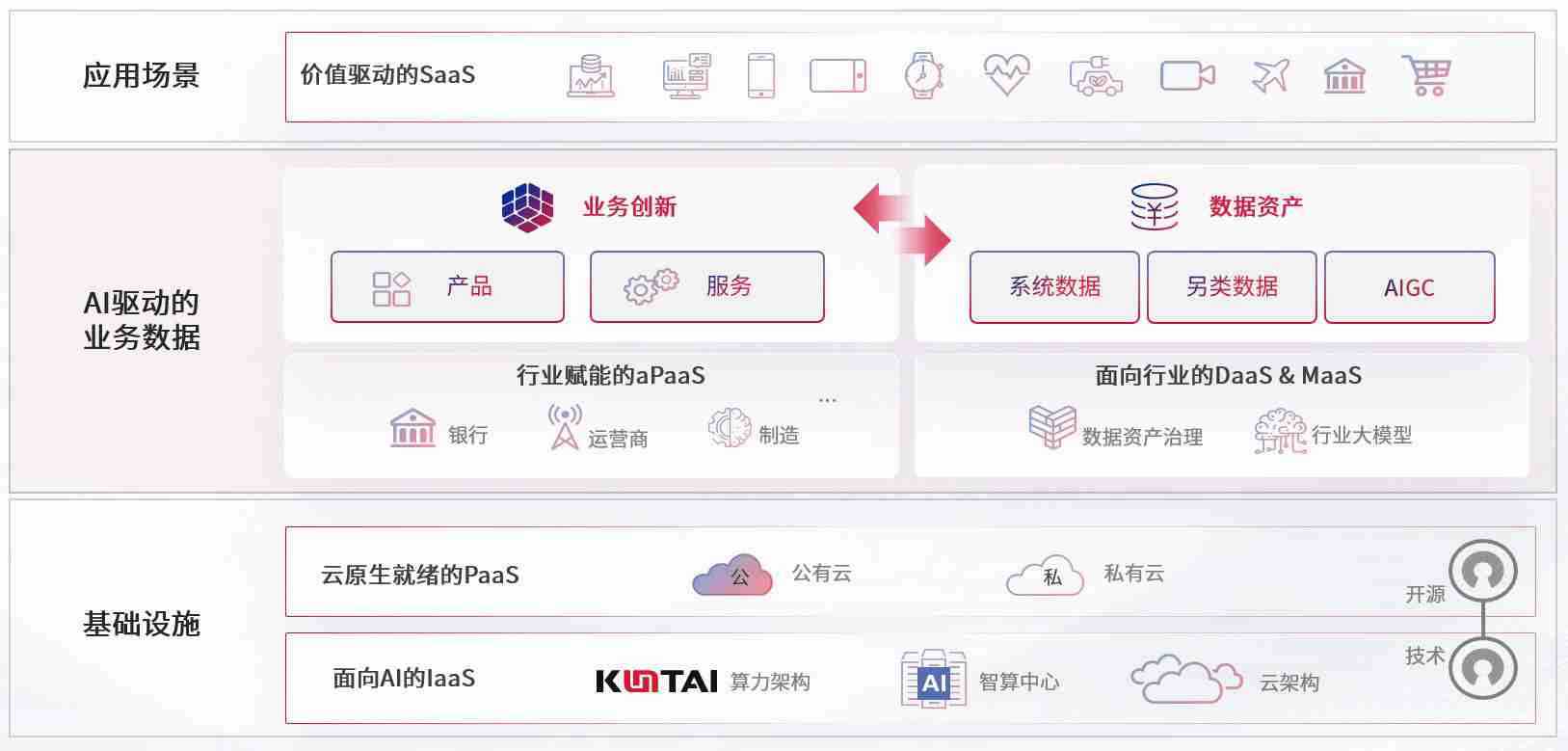数字时代,,,,围绕企业数字化转型的关键要素,,,,星欧娱乐数码开创性的提出数云融合战略和技术体系框架,,,着力在云原生、、、、数字原生、、AI原生和信创产业上架构产品和服务能力,,为处在不同数字化转型阶段的快消零售、、汽车、、、、金融、、、、医疗、、、、政企、、、、教育、、运营商等行业客户提供泛在的敏捷IT能力和融合的数据驱动能力,,,,构建跨界融合创新的数字业务场景和新业务模式,,助力企业级客户建立面向未来的核心能力和竞争优势,,全面推动社会的数字化、、、、智能化转型升级。。。
